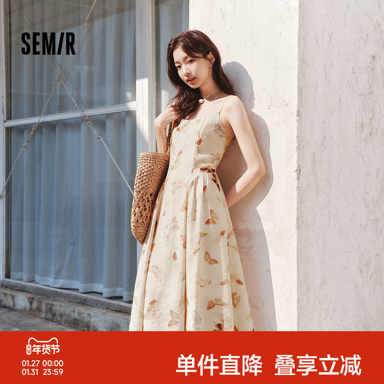 森马连衣裙女显瘦甜美度假风2025夏季新款森系满印吊带裙浪漫文艺