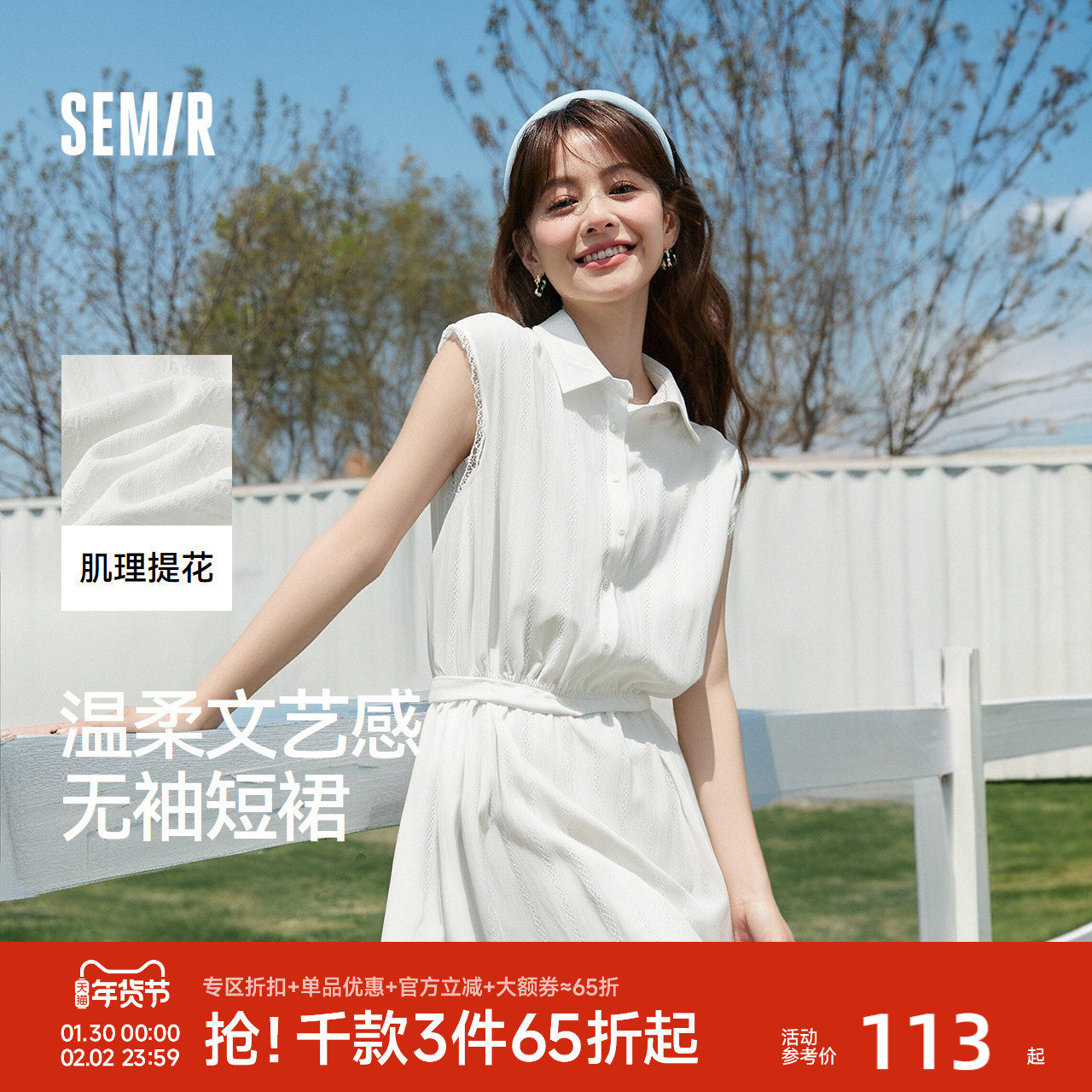森马连衣裙女设计感肌理文艺夏季2025新款蕾丝收腰无袖短裙温柔系