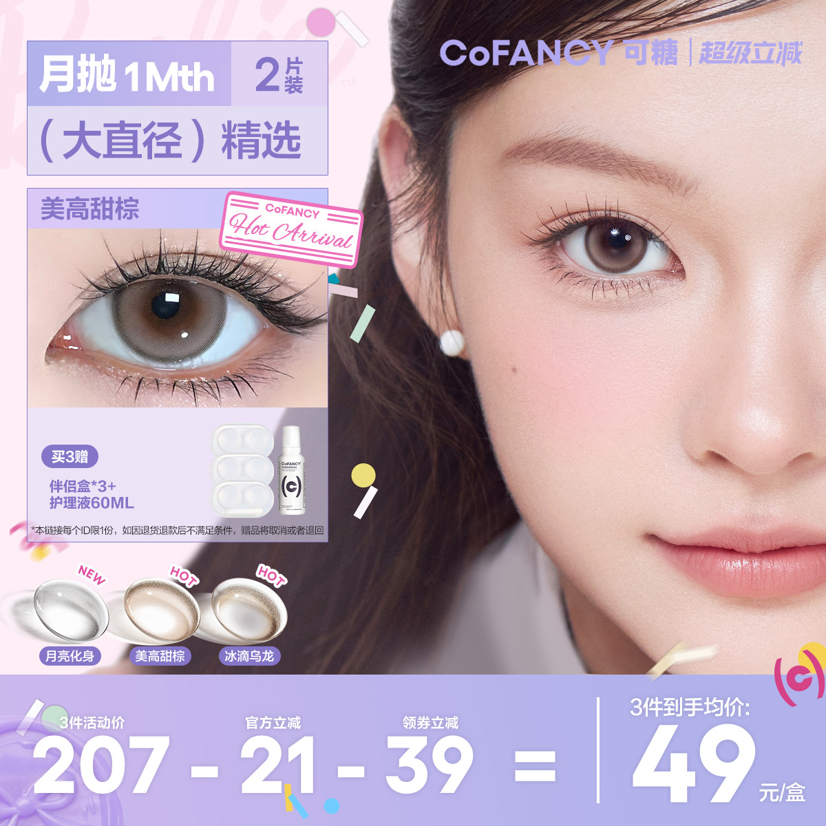COFANCY可糖联名月抛大小直径彩色隐形眼镜三明治美瞳2片装近视镜