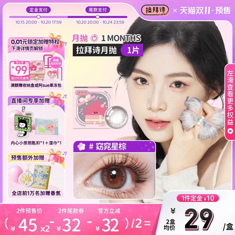 拉拜诗美瞳月抛合集隐形近视眼镜大小直径新手2片隐形眼镜旗舰店