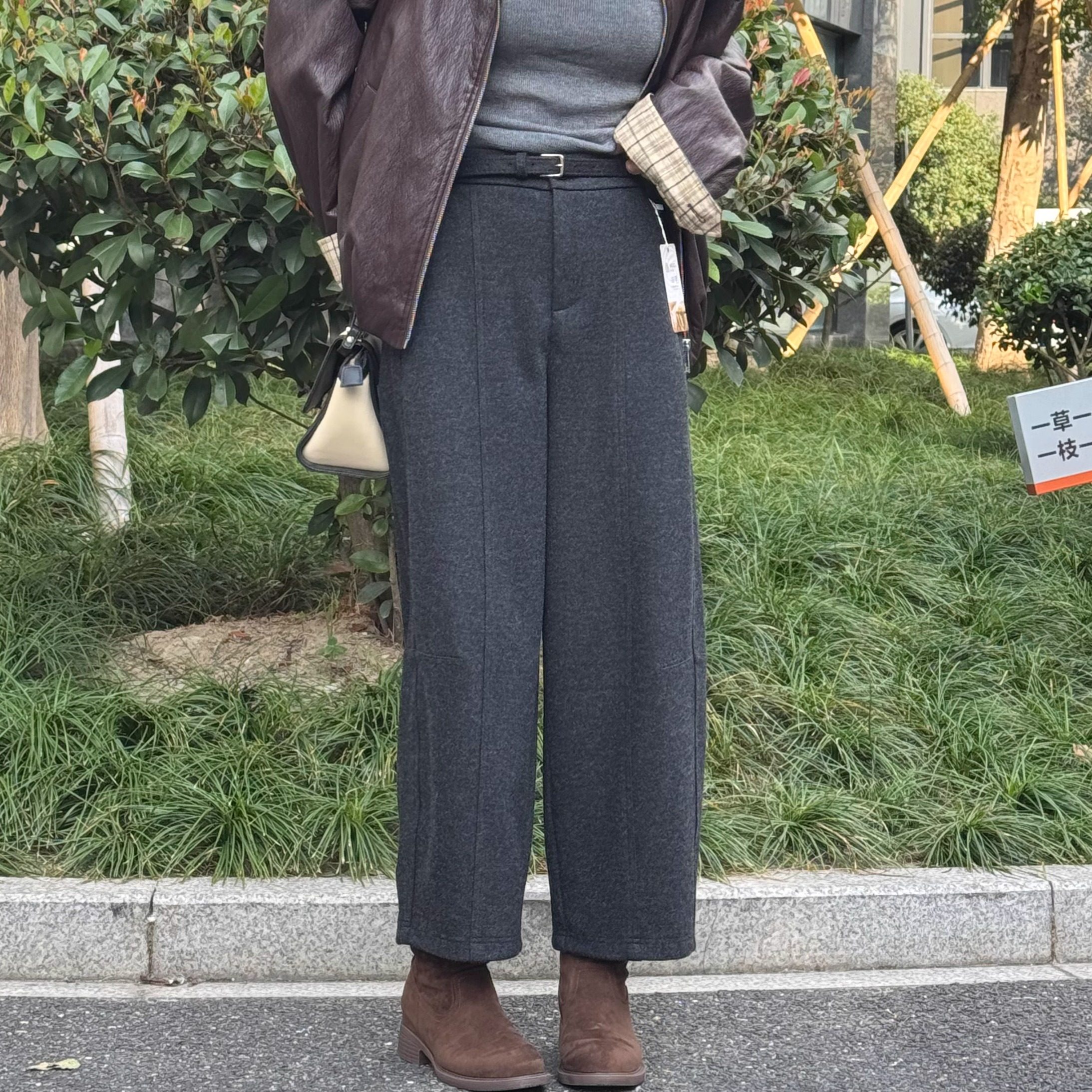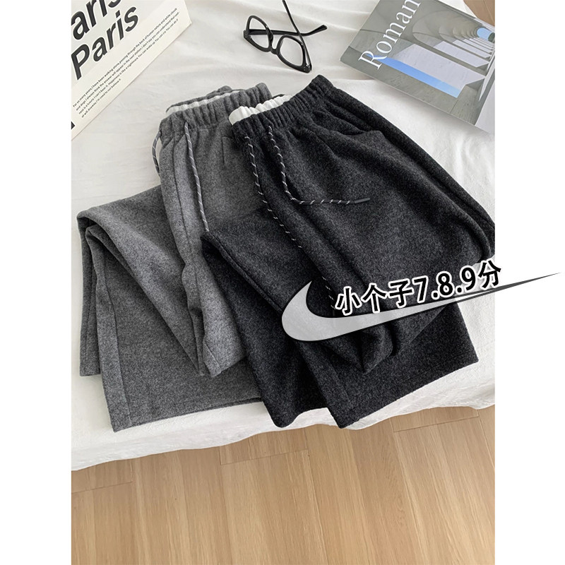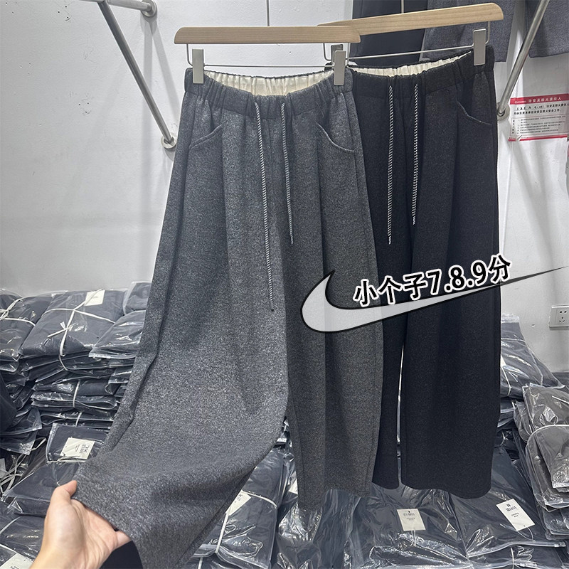 黑灰色毛呢九分阔腿裤女秋冬小个子老钱风直筒宽松休闲奶奶萝卜裤