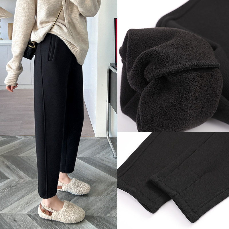 粘钻萝卜裤女秋冬加绒裤子女显瘦百搭小个子腿粗加厚九分休闲卫裤