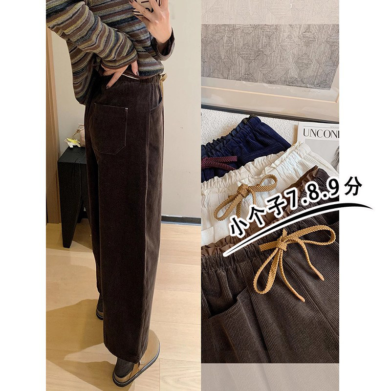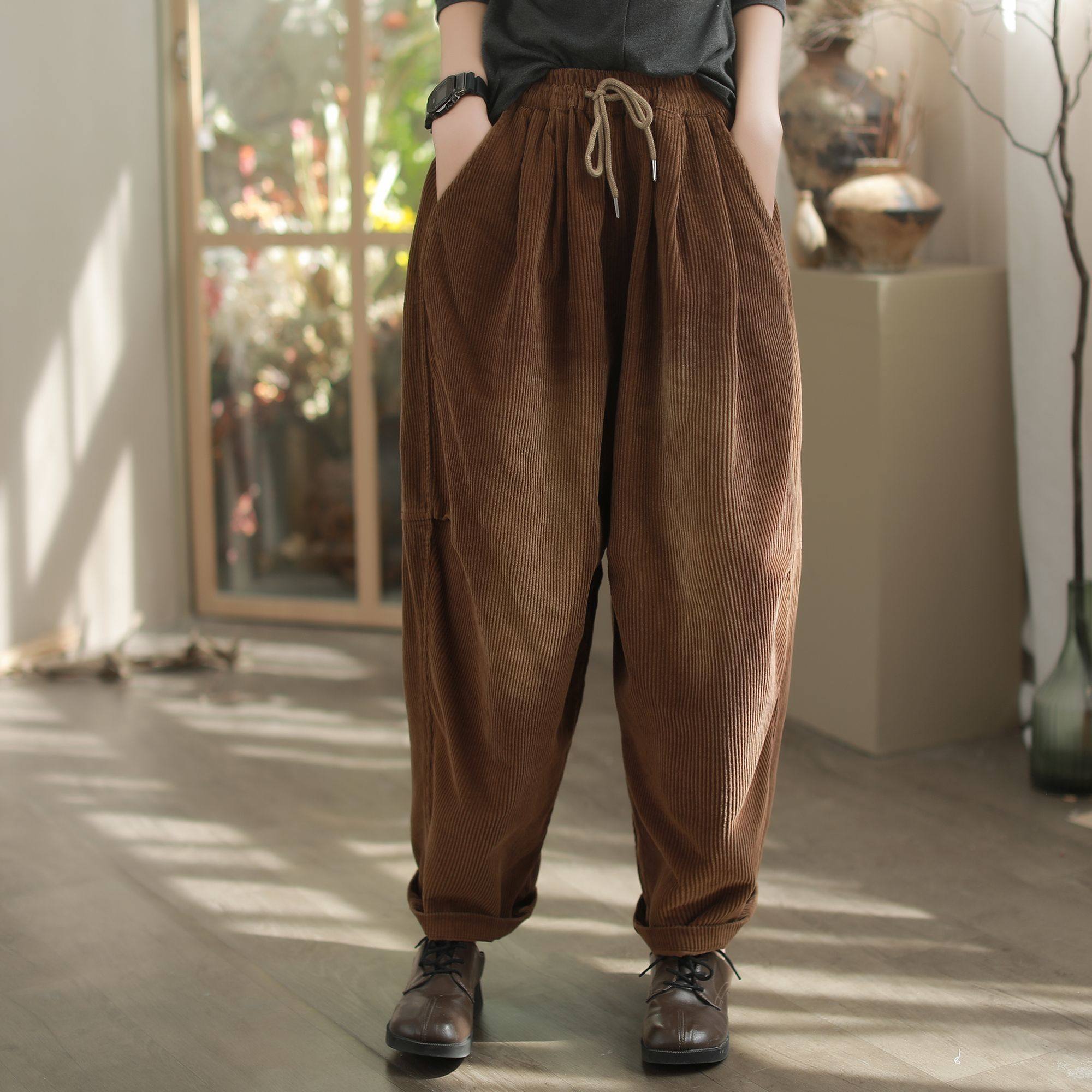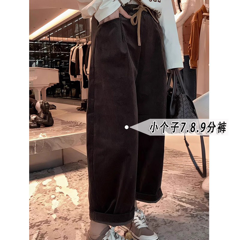 灯芯绒萝卜裤女秋冬加厚保暖高腰宽松松紧腰阔腿裤全棉条绒哈伦裤