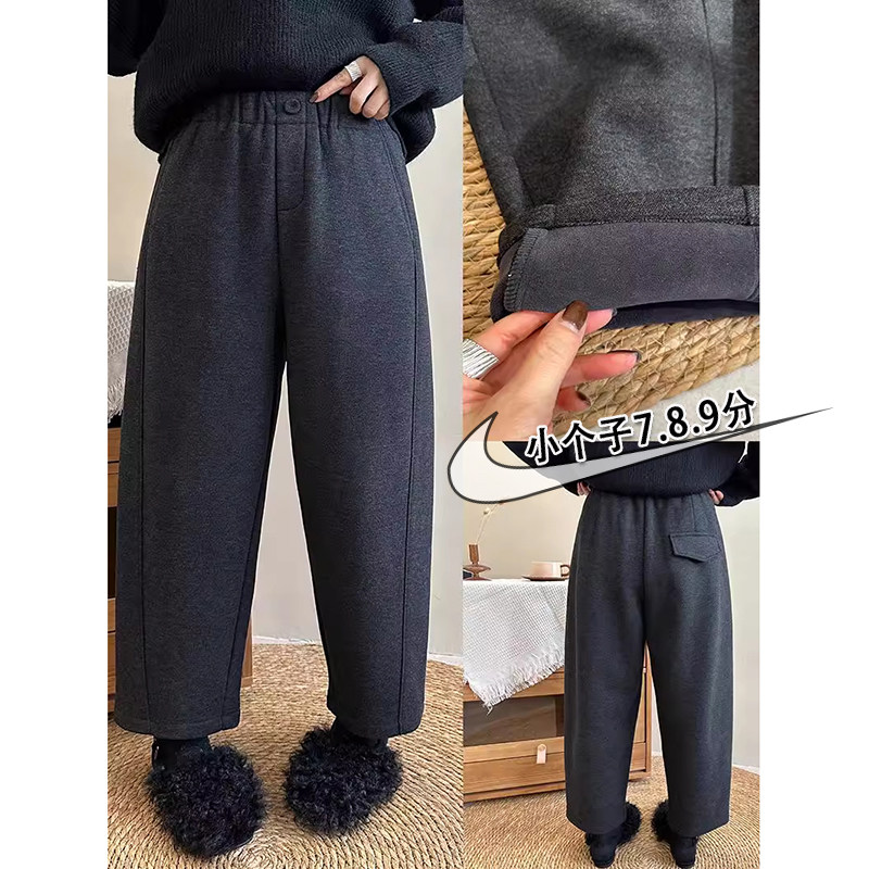 加绒加厚羊毛呢萝卜裤女秋冬季保暖直筒小个子长裤休闲裤2025新款