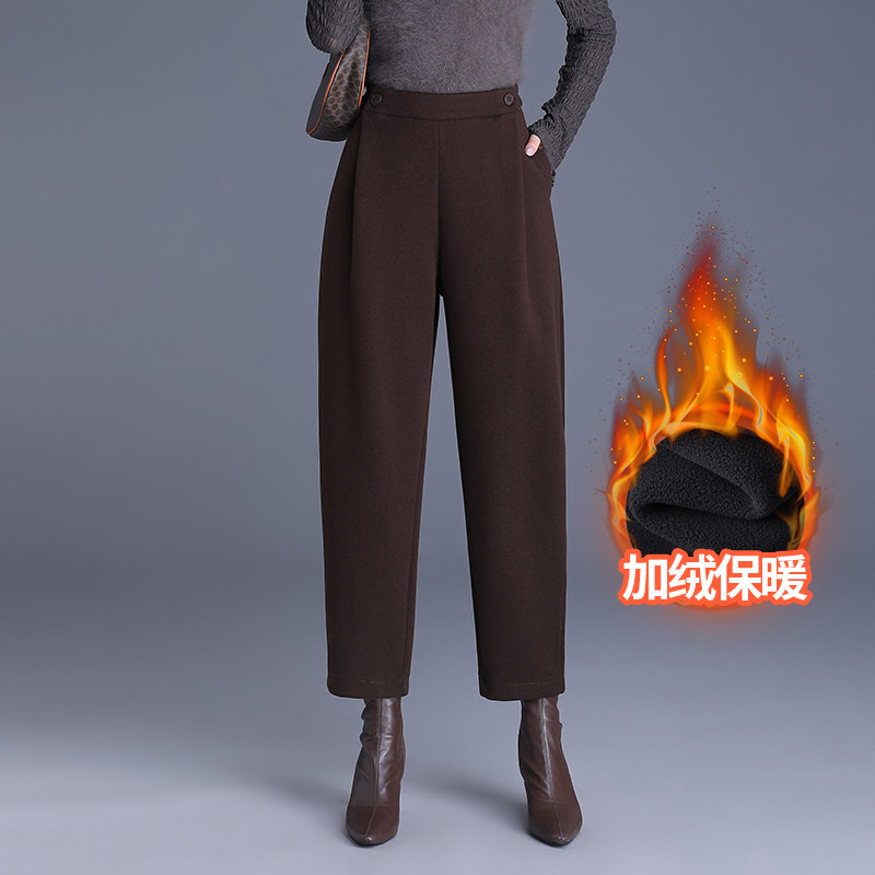 高腰阔腿萝卜裤女秋冬哈伦裤时尚新款宽松加绒九分小脚毛呢休闲裤
