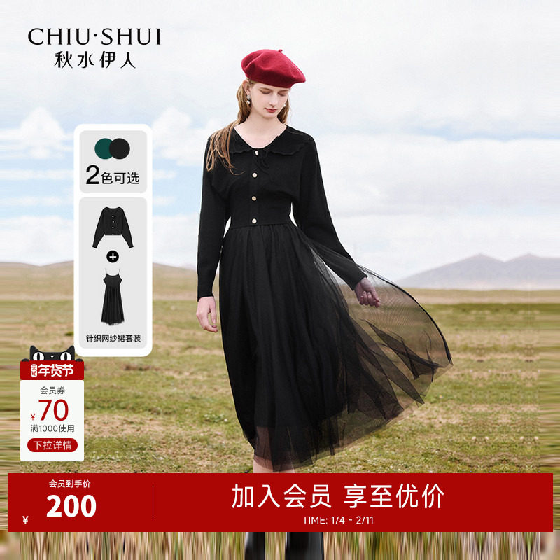 秋水伊人奥莱法式优雅连衣裙套装2025年秋女装针织衫吊带裙两件套