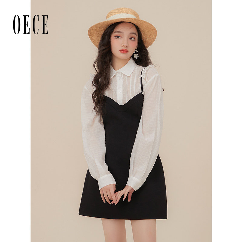 Oece别致独特套装裙女春夏季新款设计感衬衫减龄吊带裙两件套