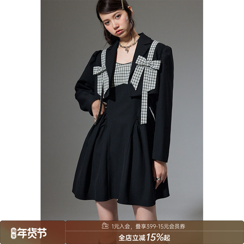 酒午自制【绿野仙踪】复古秋季荡领拼接大摆裙+吊带裙两件套装女