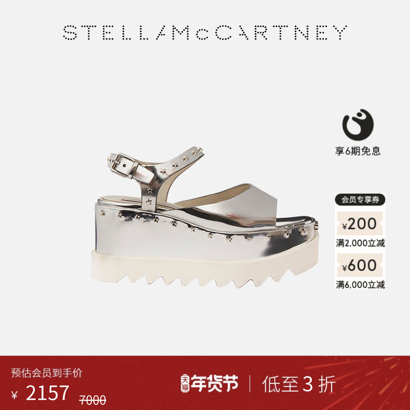 [低至3折]ELYSE Stella McCartney银色厚底鞋女士松糕底凉鞋