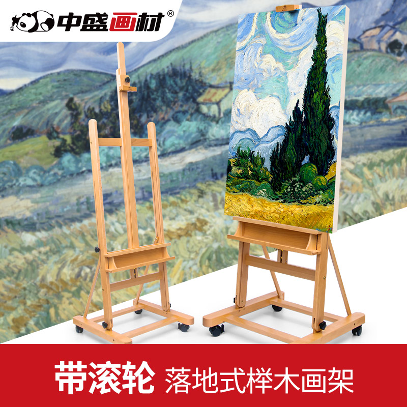 极速大型画架 实木大画架 木制可升降油画架P实木画架带轮红榉木