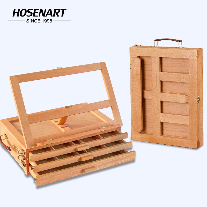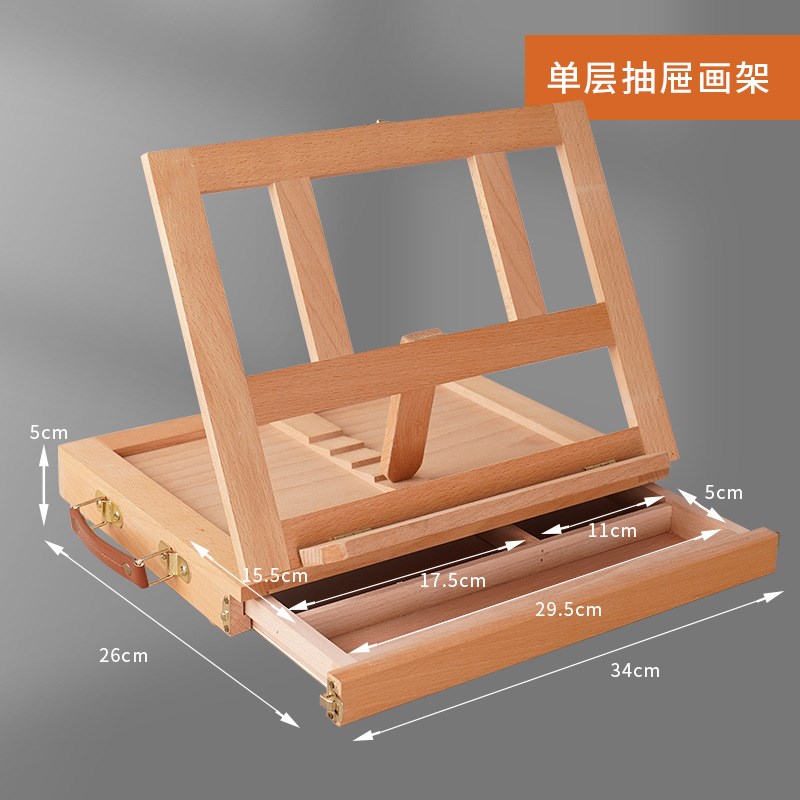 桌面画架抽屉式桌上油画架 木制便携手提画箱油画箱台式素描画架
