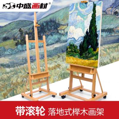 榉木制画架美术生专用支架式可折叠油画架画板一体展示架可移动多功能带轮落地两用平立可伸缩调节专业级国画