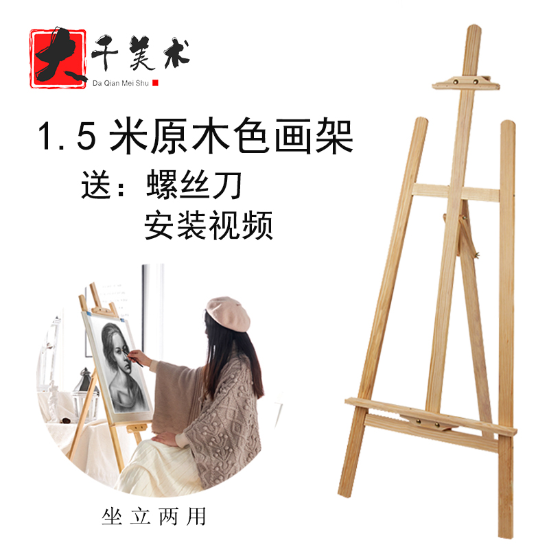 马利画架美术生专用儿童成人家用1.5m4K画板木制支架式可折叠涂鸦素描水粉油画户外多功能便携写生展示架