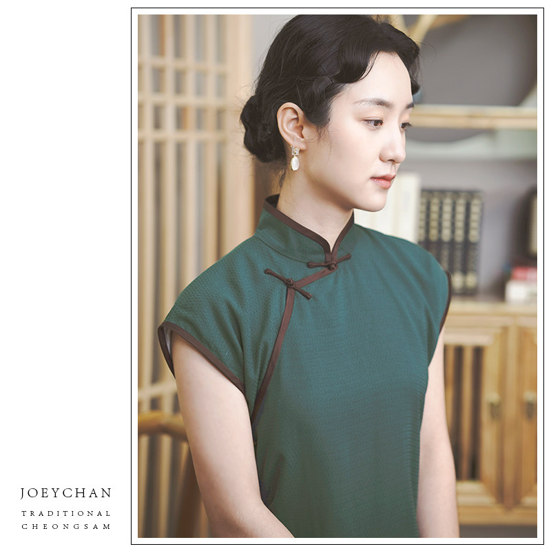 扶郎。原创女装 古典韵味 新中式 改良盘扣修身 撞色滚边少女旗袍