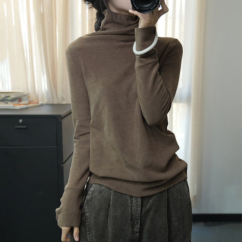 古与色韩版简约高领宽松大码套头百搭长袖纯棉打底T恤衫女上衣冬