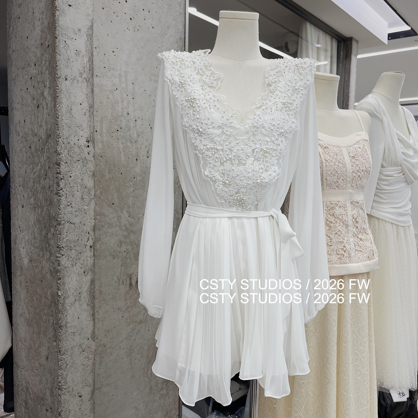- 蕾丝白色连衣裙秋