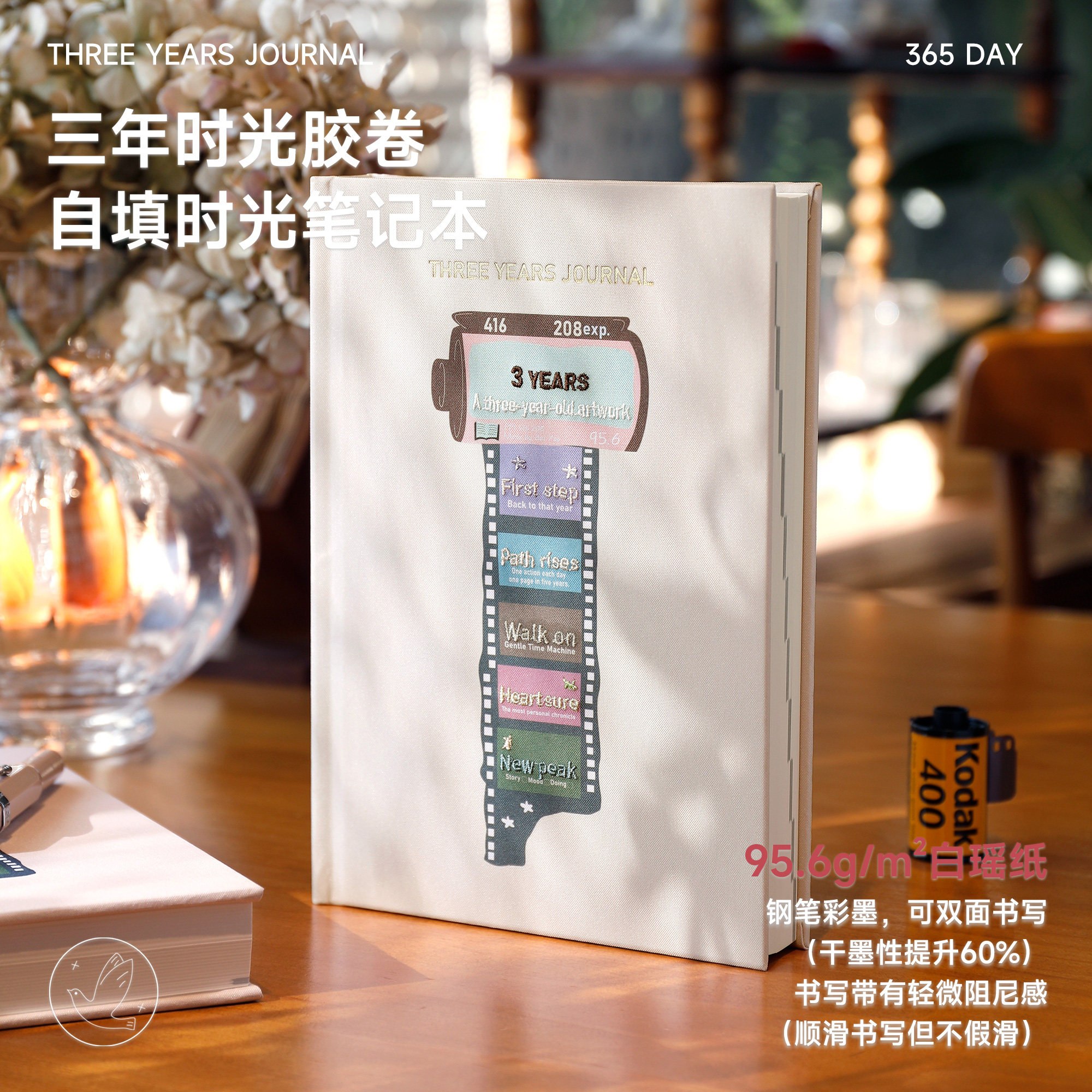 胶卷三年日记本白瑶纸自填日期三年时光笔记本精装刺绣日程本A5手账裸背雨露麻封套手帐本创意礼品五年日记本