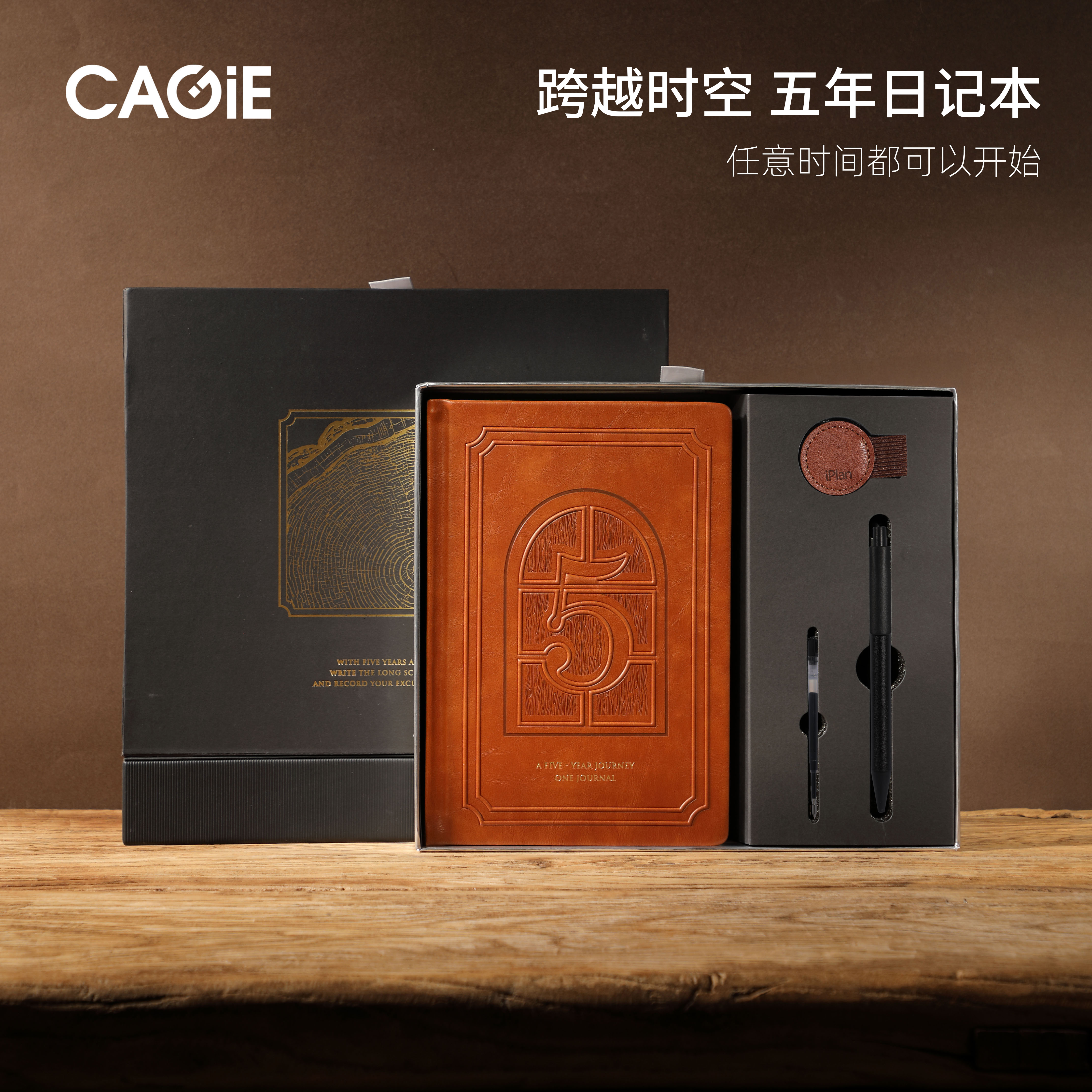 卡杰新款五年日记本时间自填式日程计划笔记本子高颜值加厚自律规划本成人手帐复古记事本手账礼盒套装可定制