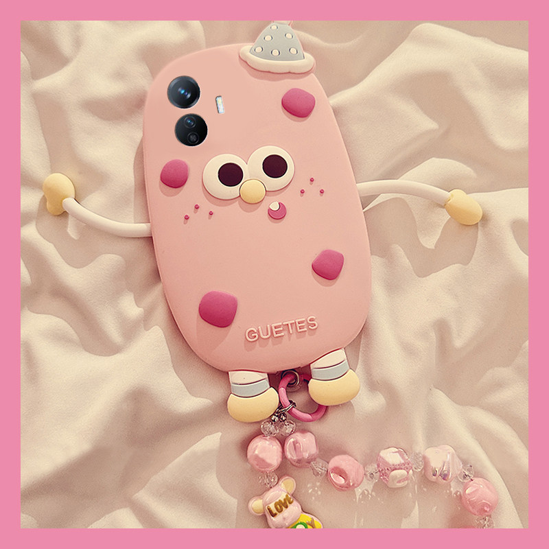 适用vivoy300gt手机壳y300pro+可斜挎y200i卡通100立体y97草莓y95怪兽u1带y67挂绳y76s挂链十vivo粉色硅胶女p