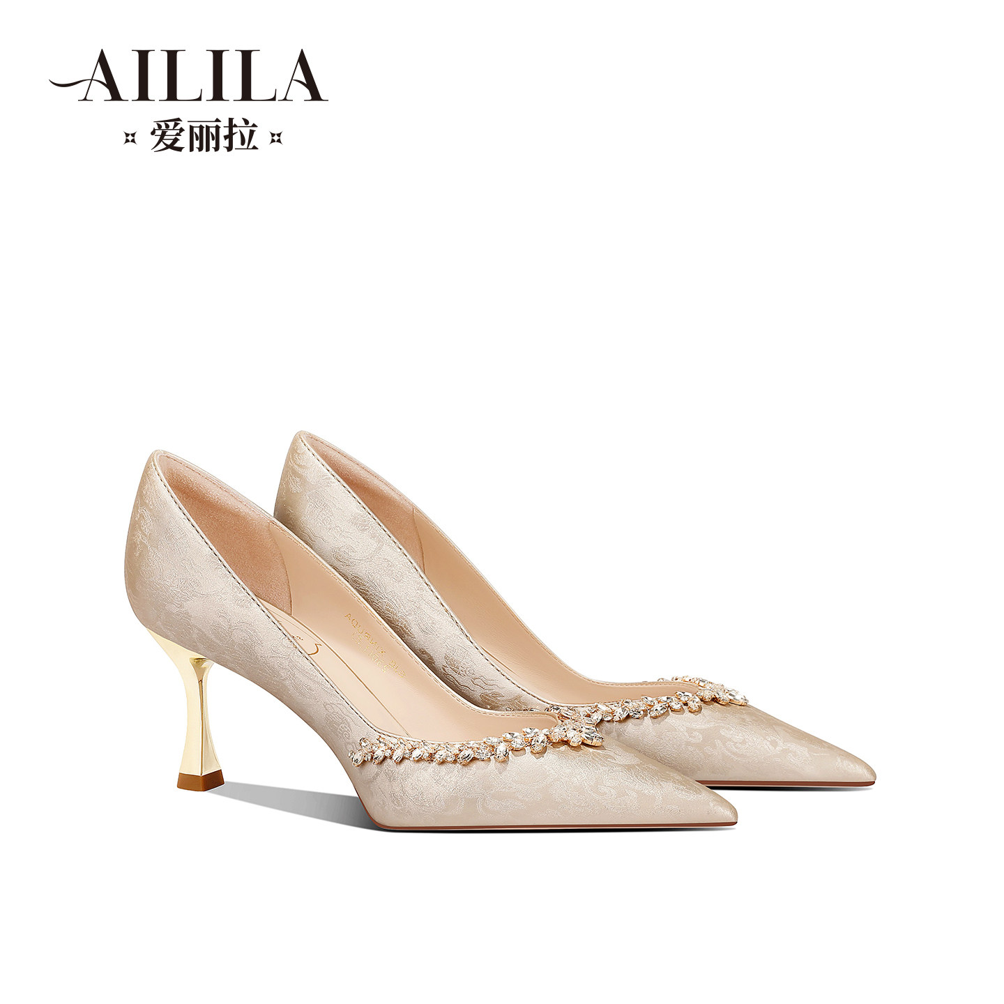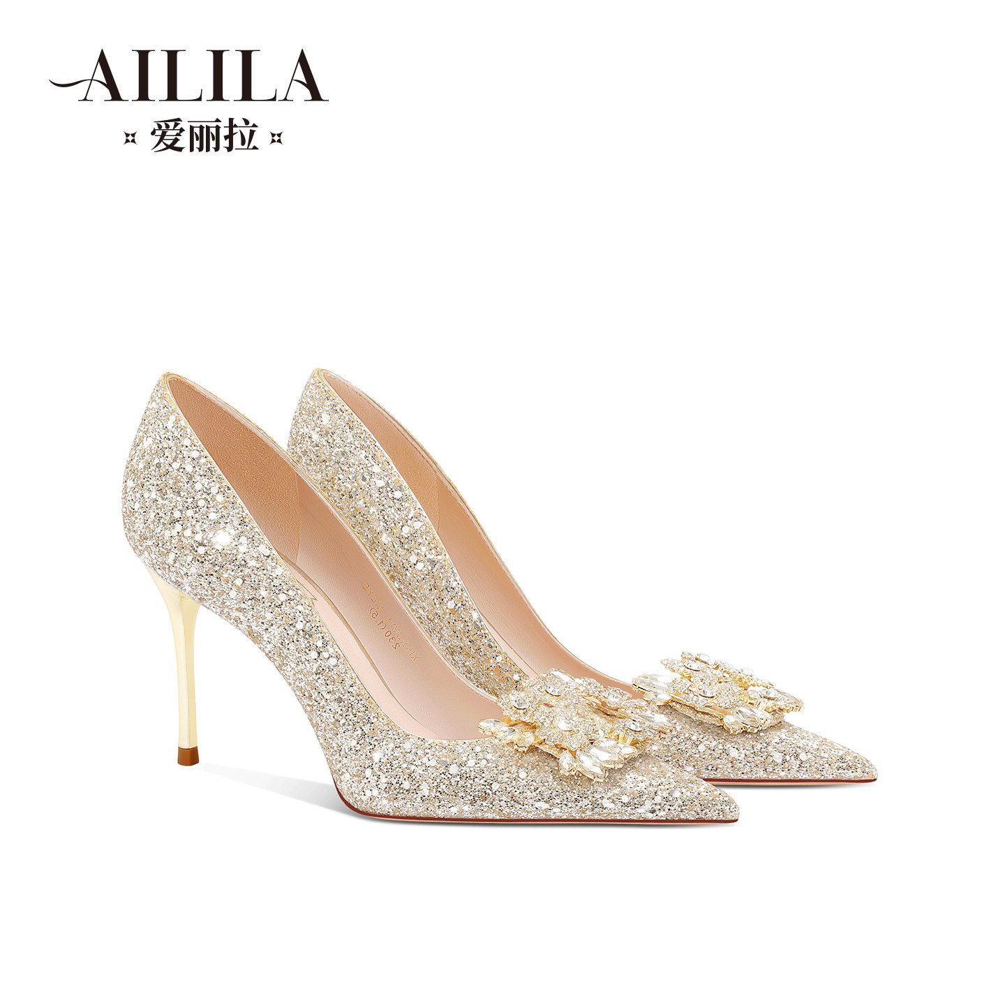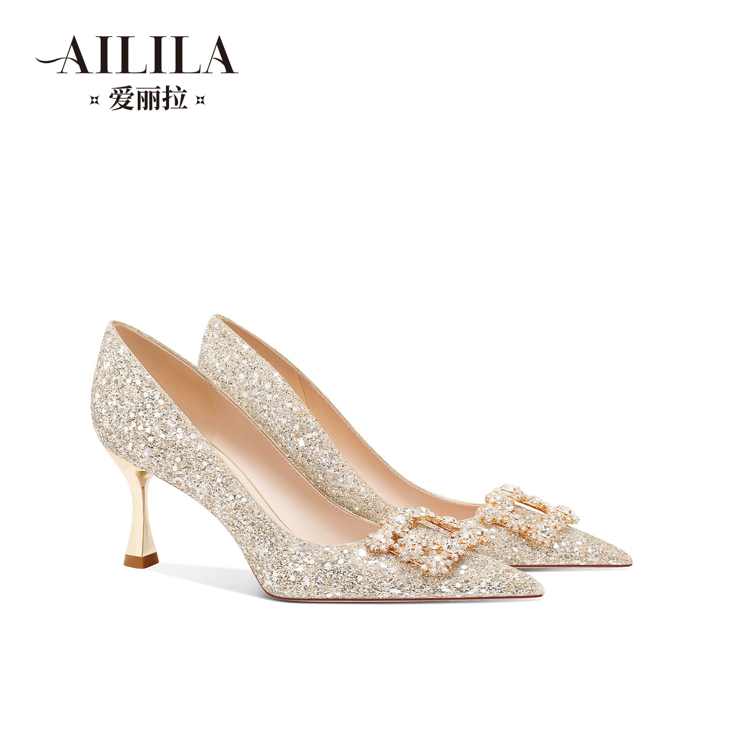 爱丽拉绝美婚鞋女款2025新款禾秀主婚纱两穿新娘水晶高跟鞋不累脚