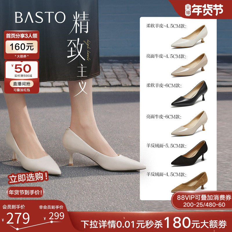 【精致主义】百思图26春新款尖头白色裸色高跟鞋真皮婚鞋女单鞋