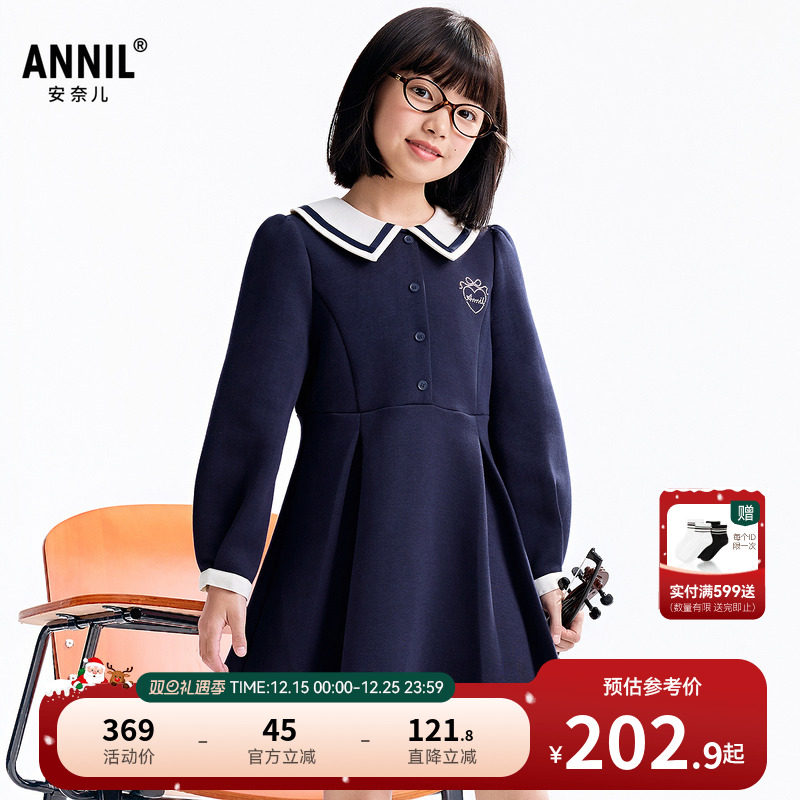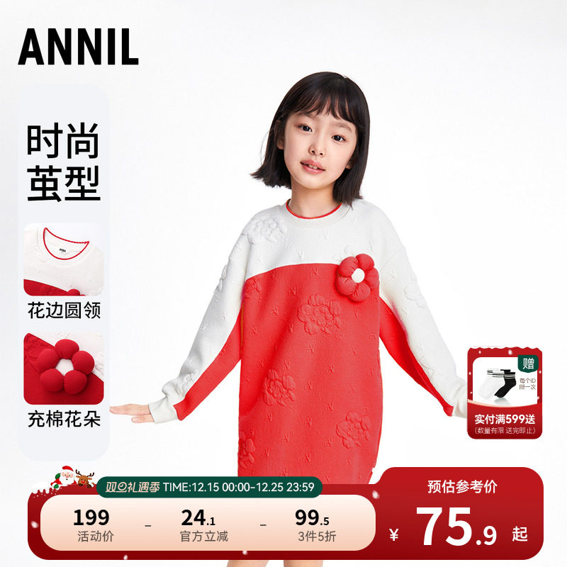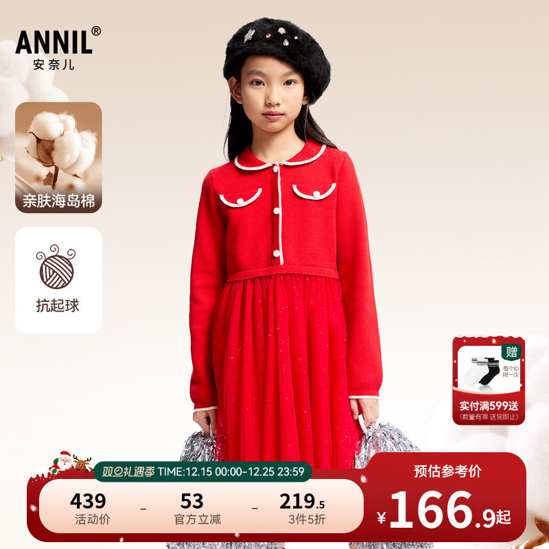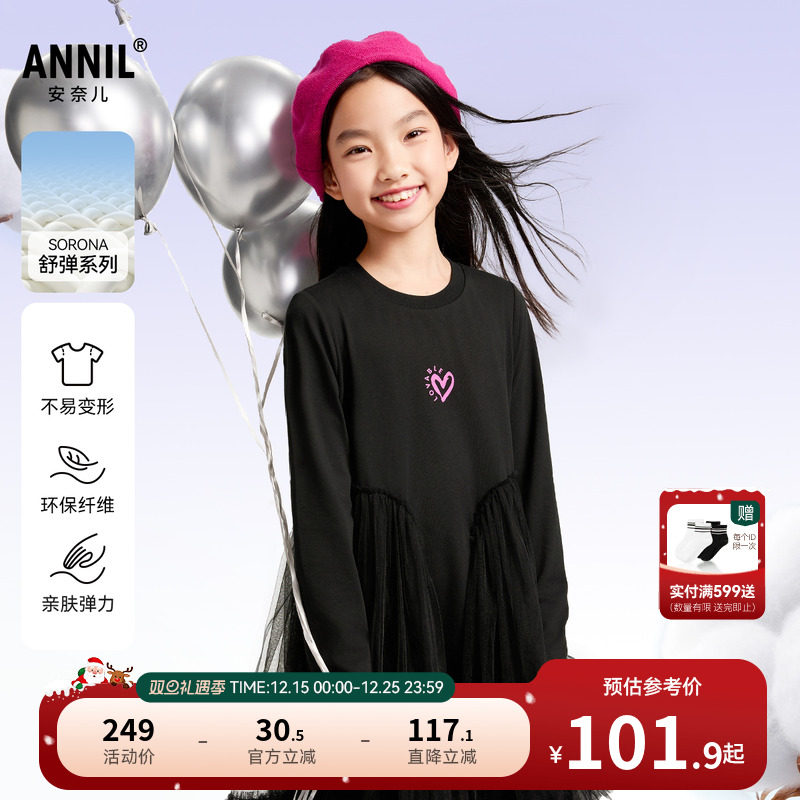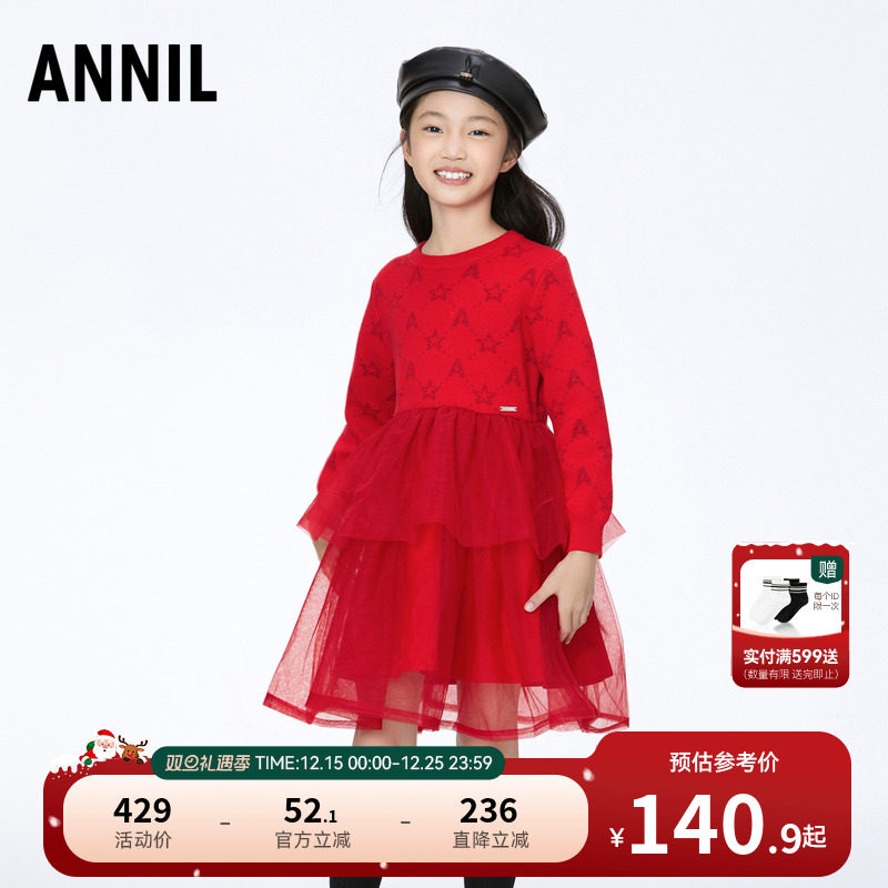 【商场同款】安奈儿童装女童长袖连衣裙冬甜美拼纱AG343781