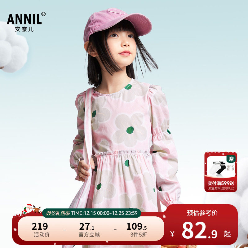 安奈儿童装女童长袖连衣裙2025春新款甜美纯棉印花小清新透气
