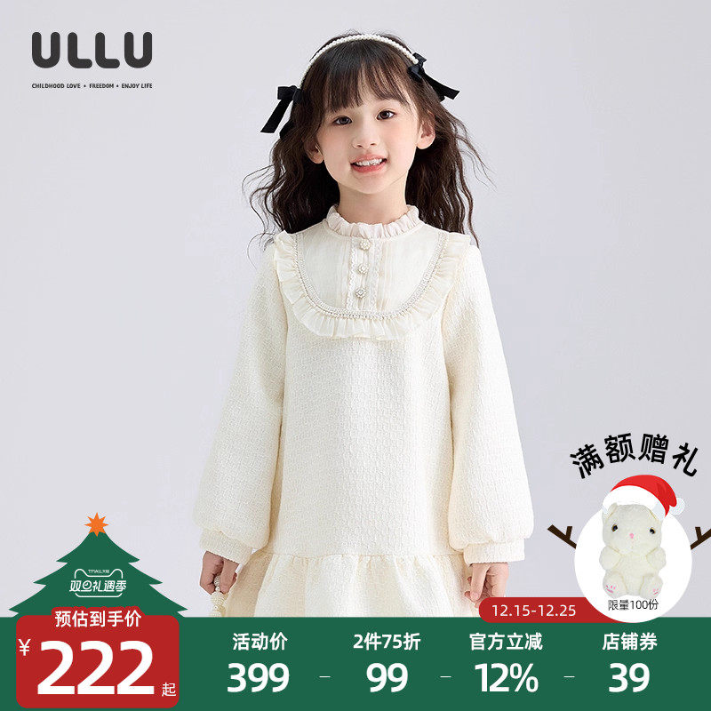 优露童装女童长袖连衣裙ULLU冬新款长袖裙子甜小香风儿童连衣裙