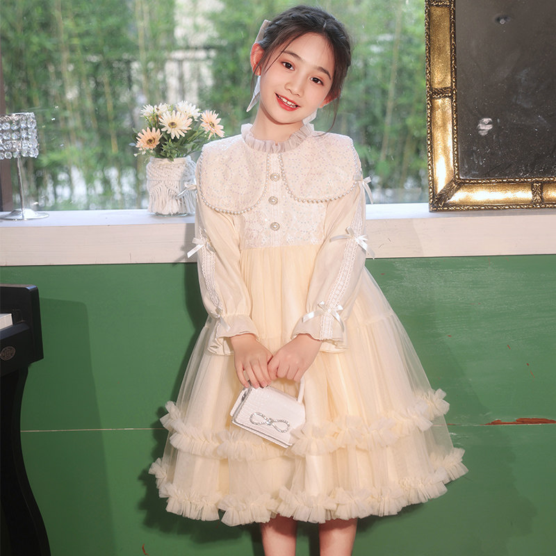 女童公主裙冬季2025新款儿童长袖裙子冬装女孩洋气网纱蓬蓬连衣裙