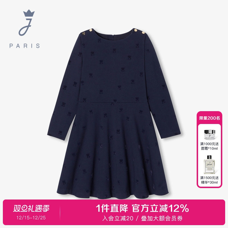 Jacadi亚卡迪法国女童长袖连衣裙秋冬加厚中大童长款裙子2039114