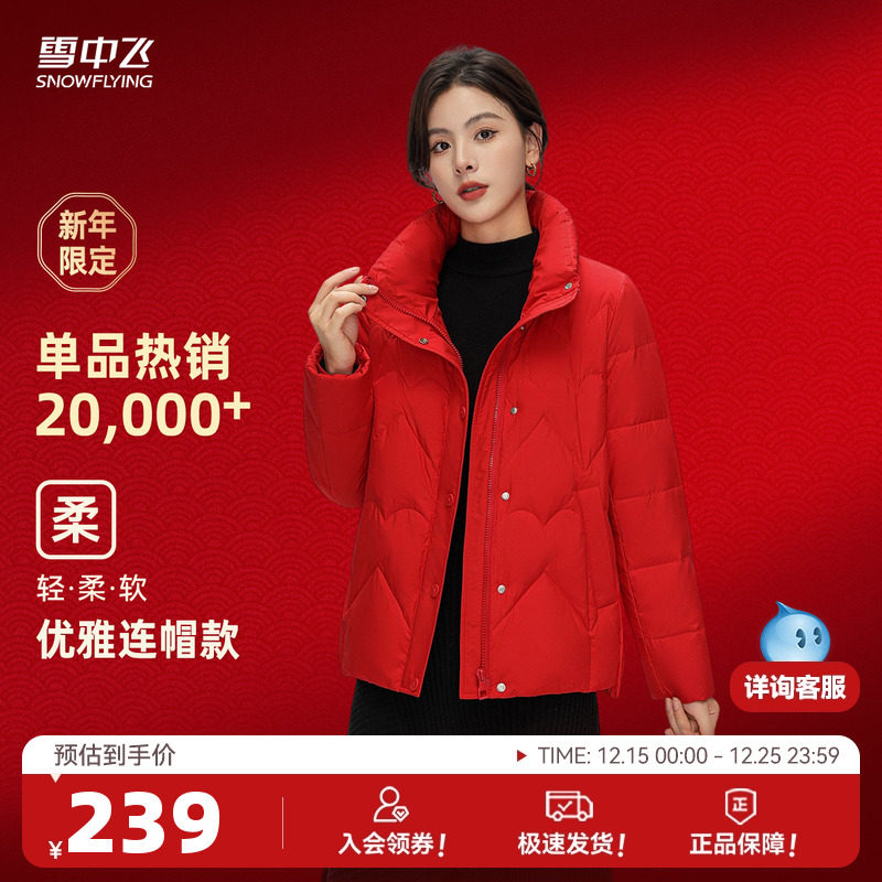 雪中飞2025冬新款短款立领休闲韩版大码显瘦女式妈妈外套羽绒服S