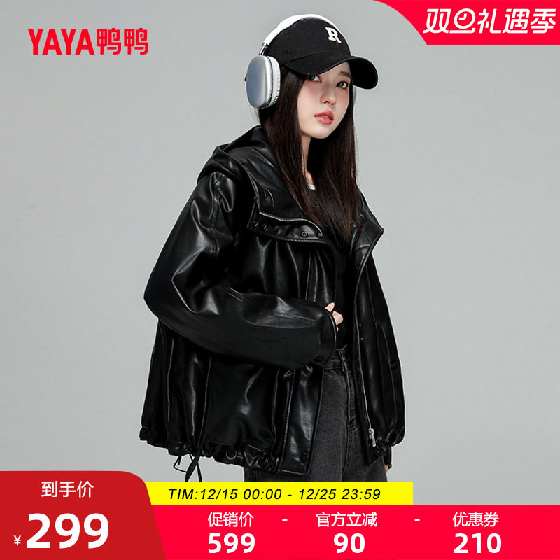 YAYA鸭鸭羽绒服女冬2025新款短款时尚连帽宽松休闲设计感加厚外套