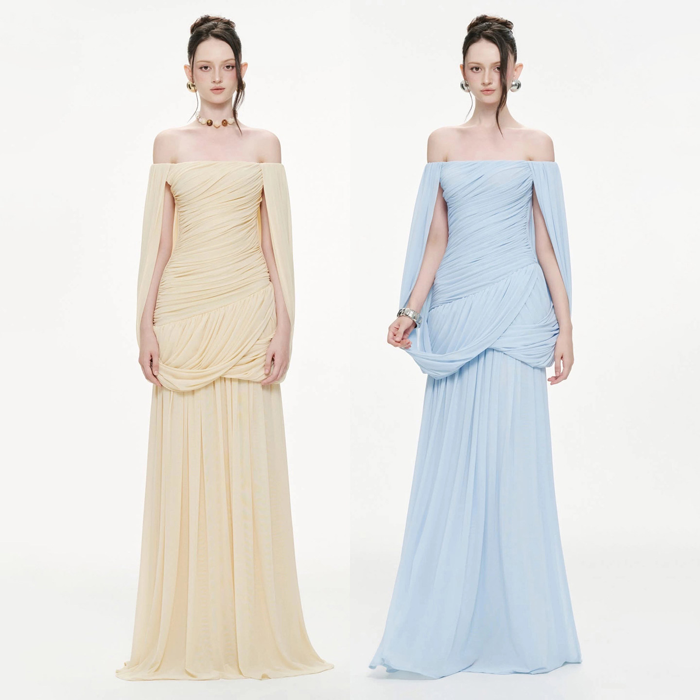 SylCue 高冷女神夏日风褶皱显瘦一字肩抹胸连衣裙百搭包臀闺蜜裙