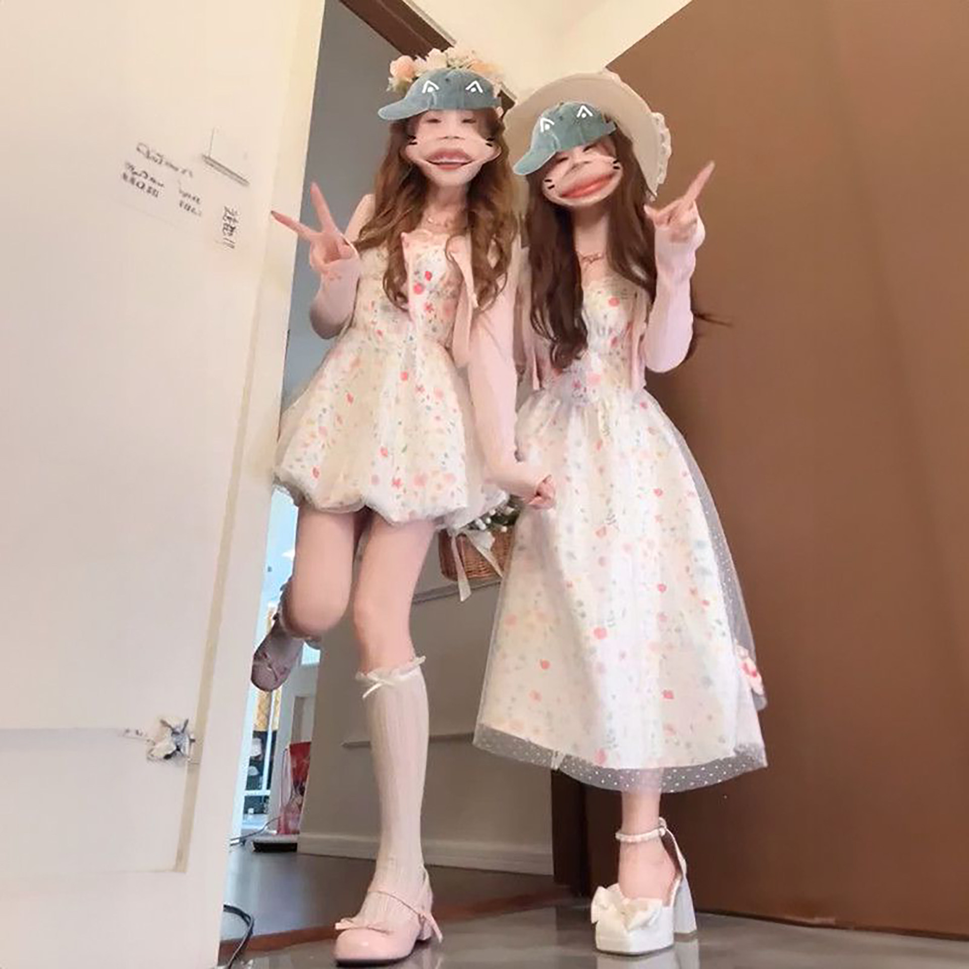 2026春夏闺蜜装温柔甜美碎花吊带连衣裙女学生防晒开衫上衣两件套