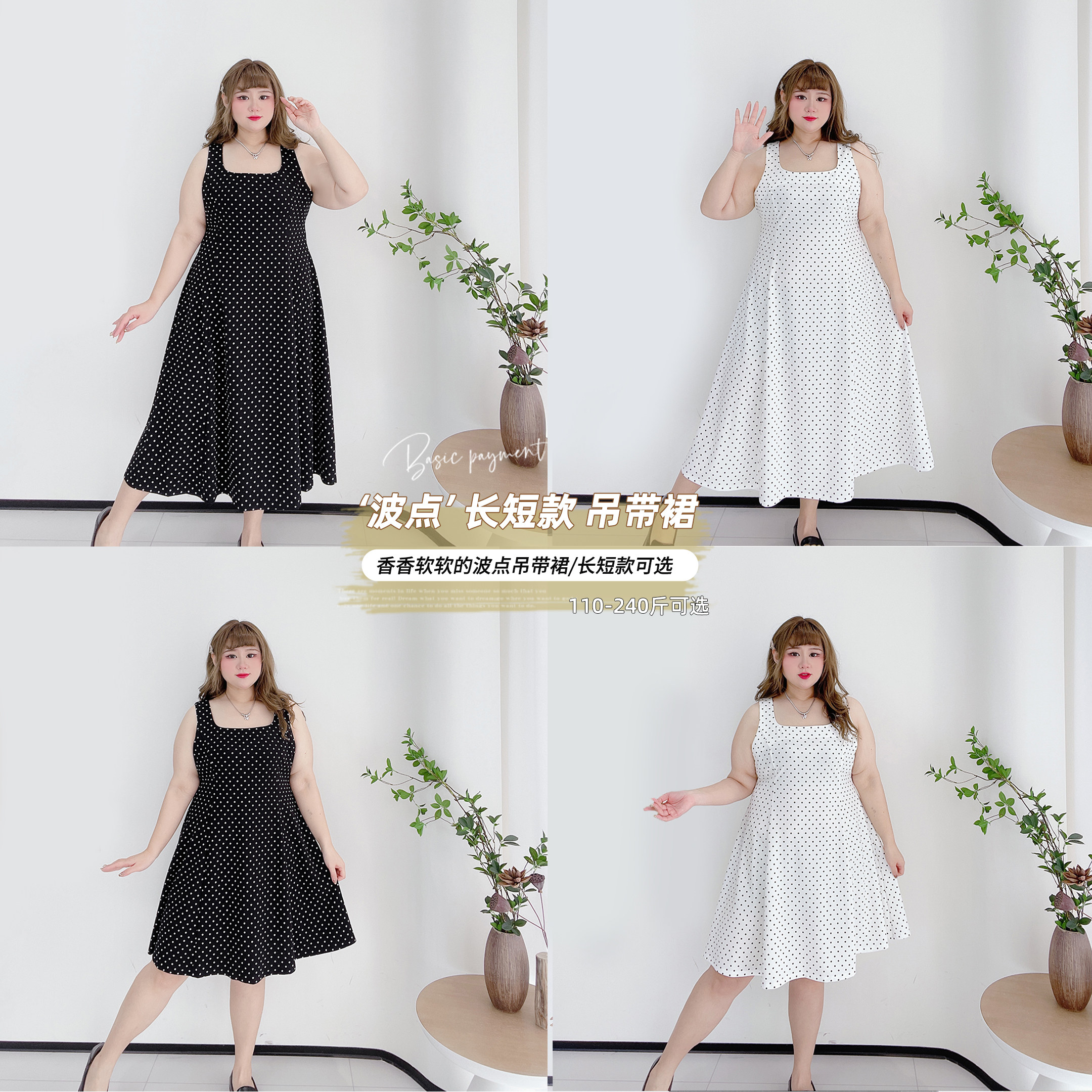 胖莹莹大码女装法式简约波点内搭方领性感闺蜜长短款吊带裙连衣裙