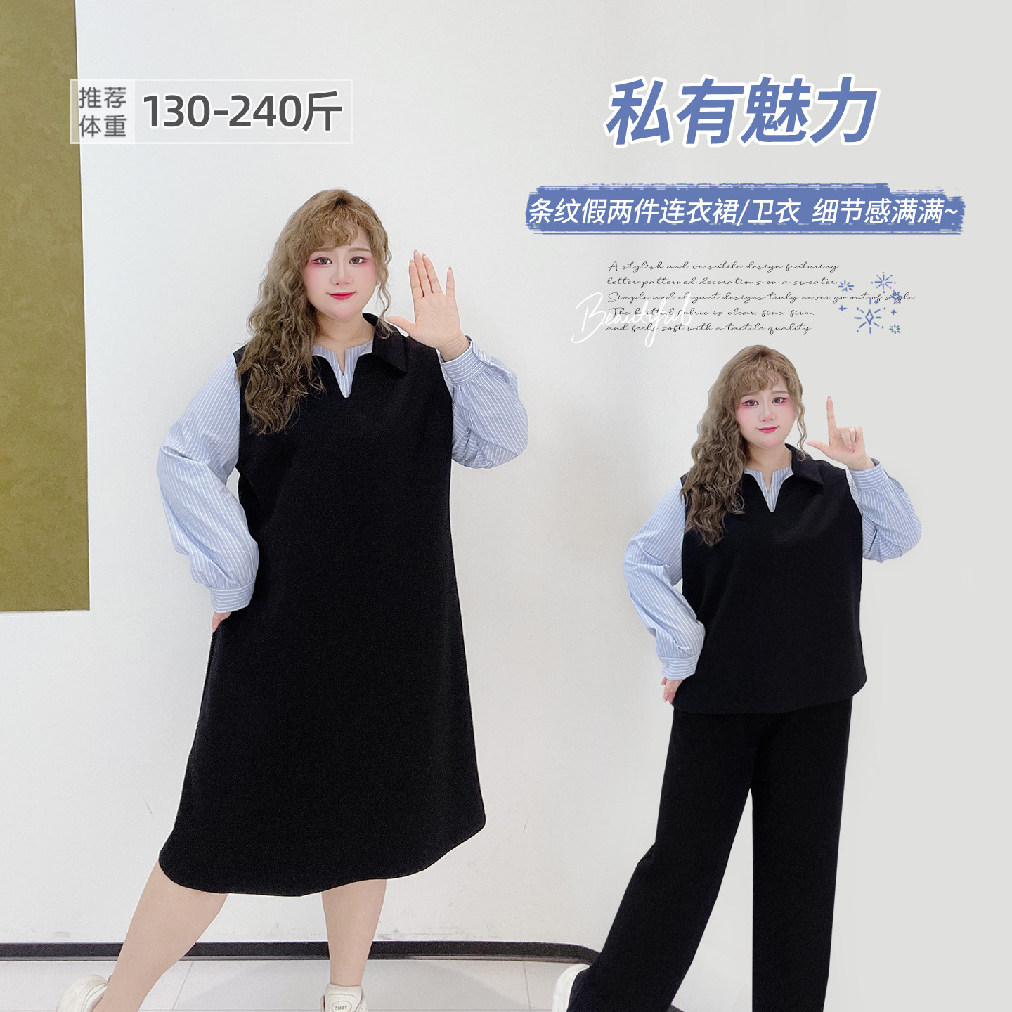 特大码300斤春秋季长袖连衣裙女日系学院风宽松显瘦学生闺蜜装200