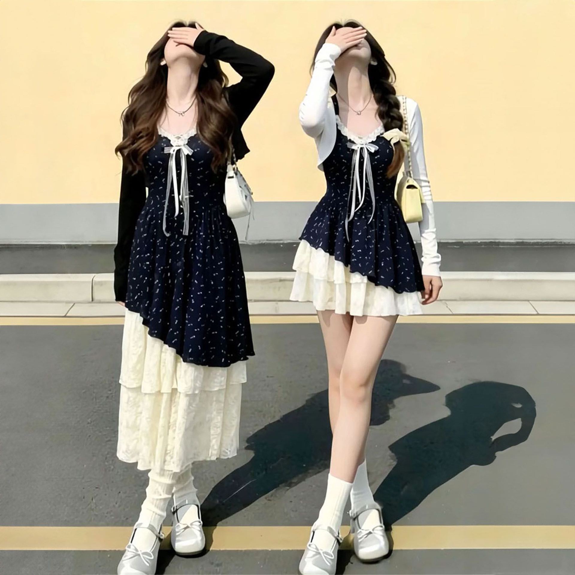 2026春季新款闺蜜装甜美碎花吊带连衣裙女学生防晒开衫上衣两件套