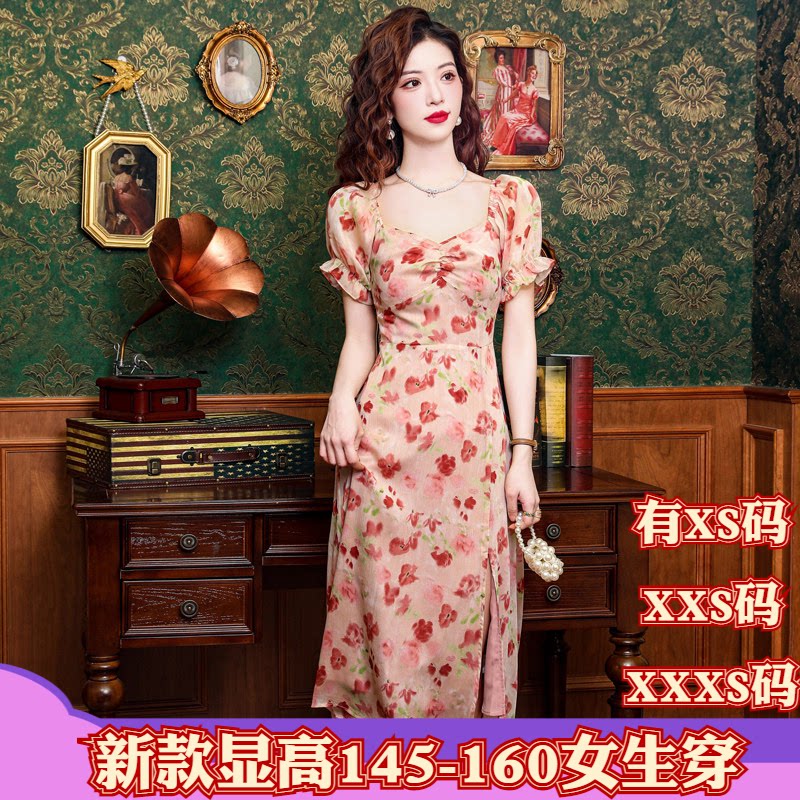 150cm小矮个子显高夏季女装加小码XXXS碎花连衣裙短袖闺蜜裙时尚
