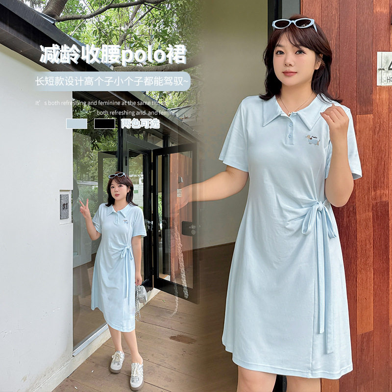 大码女装200斤胖MM闺蜜装显瘦遮肚撞色时髦夏季新款polo领连衣裙