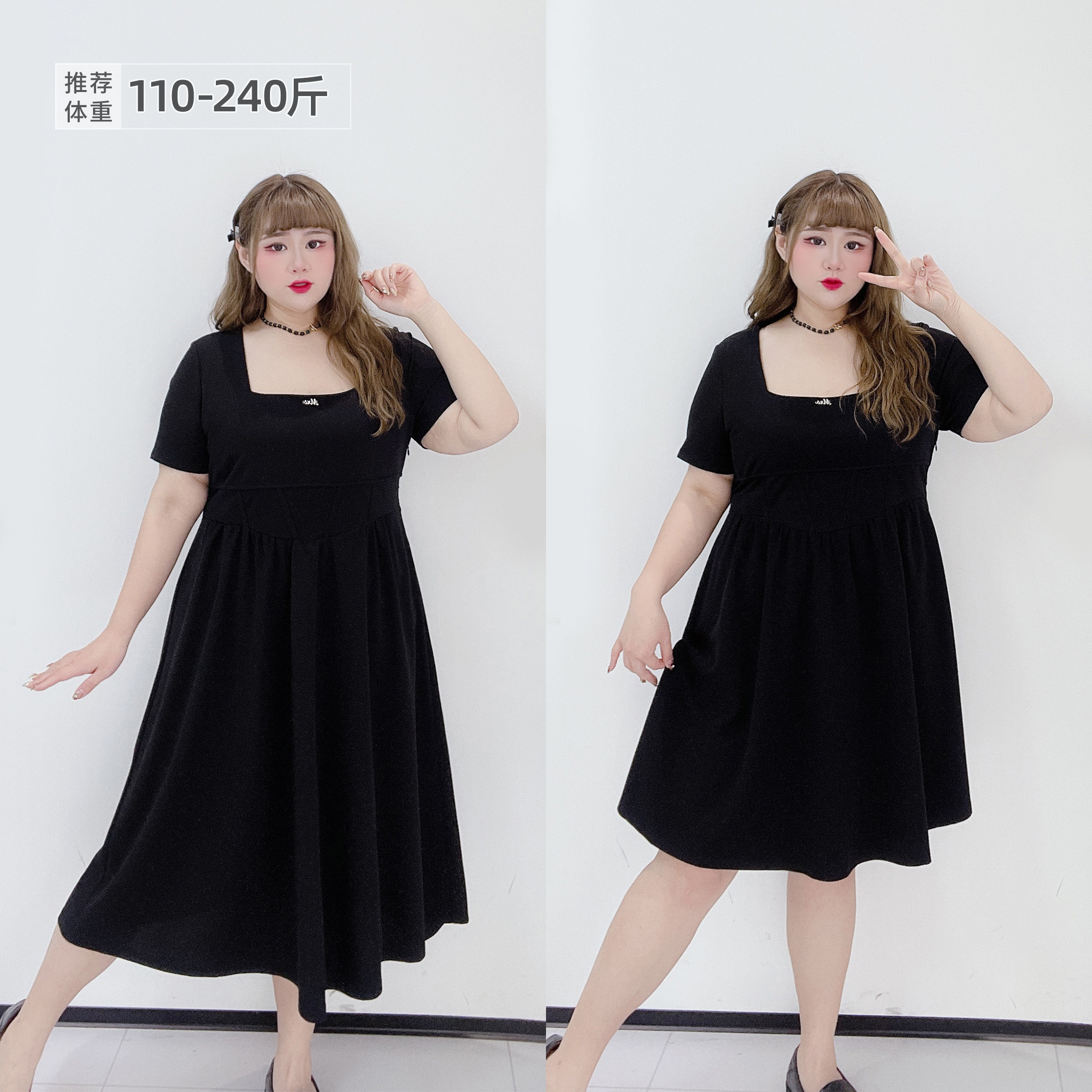 胖莹莹大码女装法式方领简约御姐风闺蜜长短款茶歇通勤显瘦连衣裙