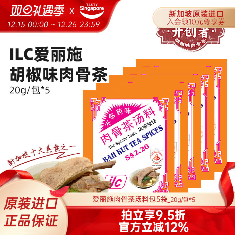 新加坡特产进口ILC爱丽施肉骨茶汤包排骨汤调味料猪骨汤煲汤20g*5