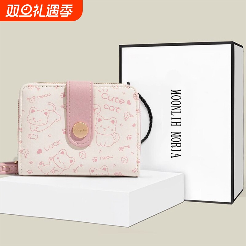 可爱猫咪折叠短款钱包韩版少女心学生薄款钱夹卡通时尚小众零钱包