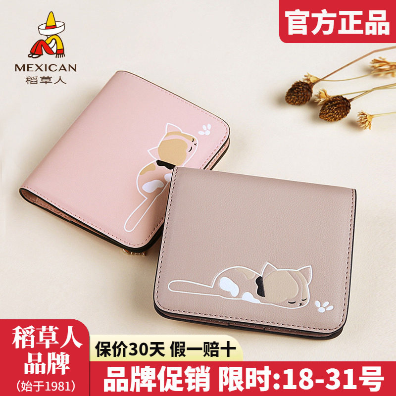 稻草人钱包女短款薄韩版两折叠学生小清新个性可爱多功能简约牛皮