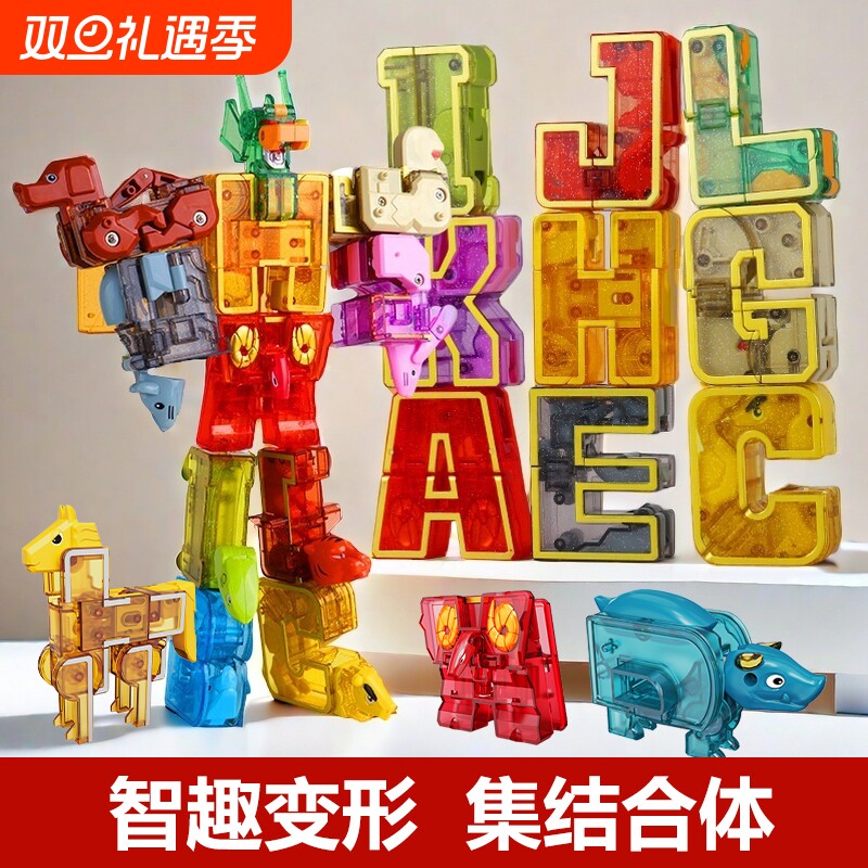 26字母变形玩具套装恐龙机器人金刚ABC动物男孩益智女孩儿童礼物