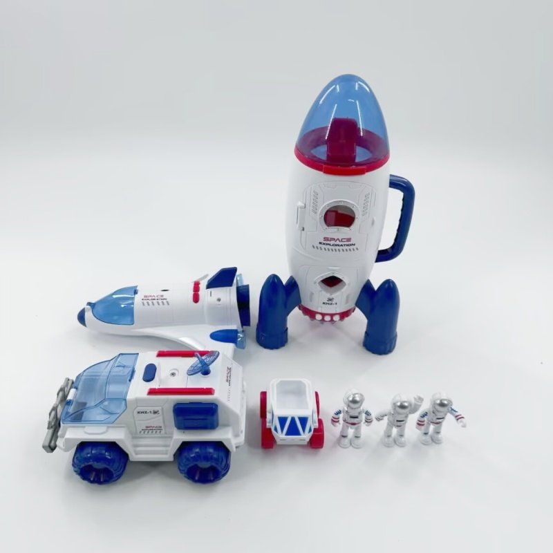 航天飞机火箭探索车穿棱机文艺车玩儿童声光塑胶变形玩具套装礼盒