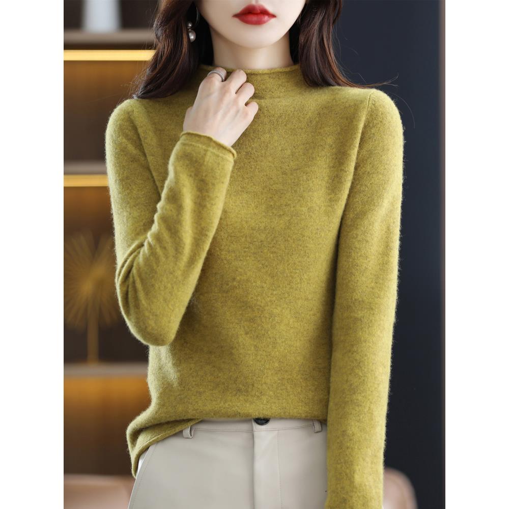 - 秋冬半高领毛衣女短款