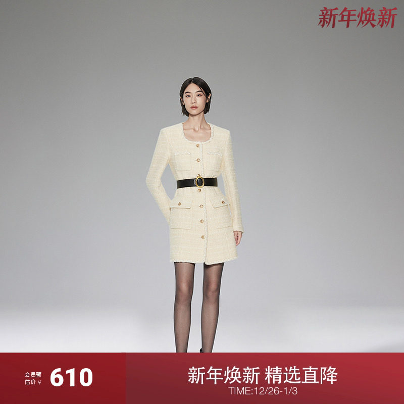 【高奢小香】欧时力羊毛呢外套连衣裙2023新款春装手工织带U领