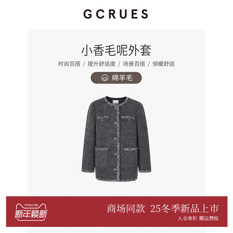 GCRUES商场同款灰色小香毛呢外套女中长款绵羊毛大衣 G09D05A0462
