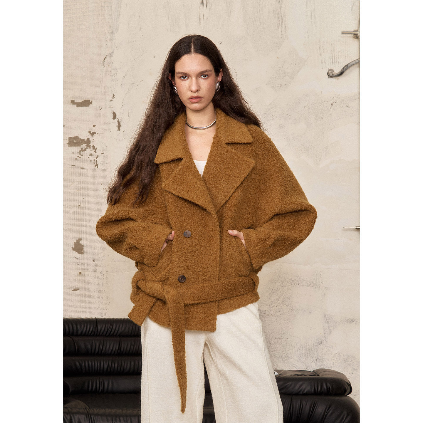 洛边 焦糖朗姆 原创设计款复古慵懒风宽松毛呢小香外套上衣秋冬新
