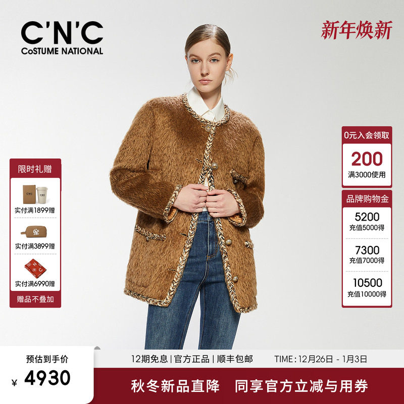 【珊华】奢定初剪羊毛马海毛艺术花呢手工编织小香毛呢外套-FW128